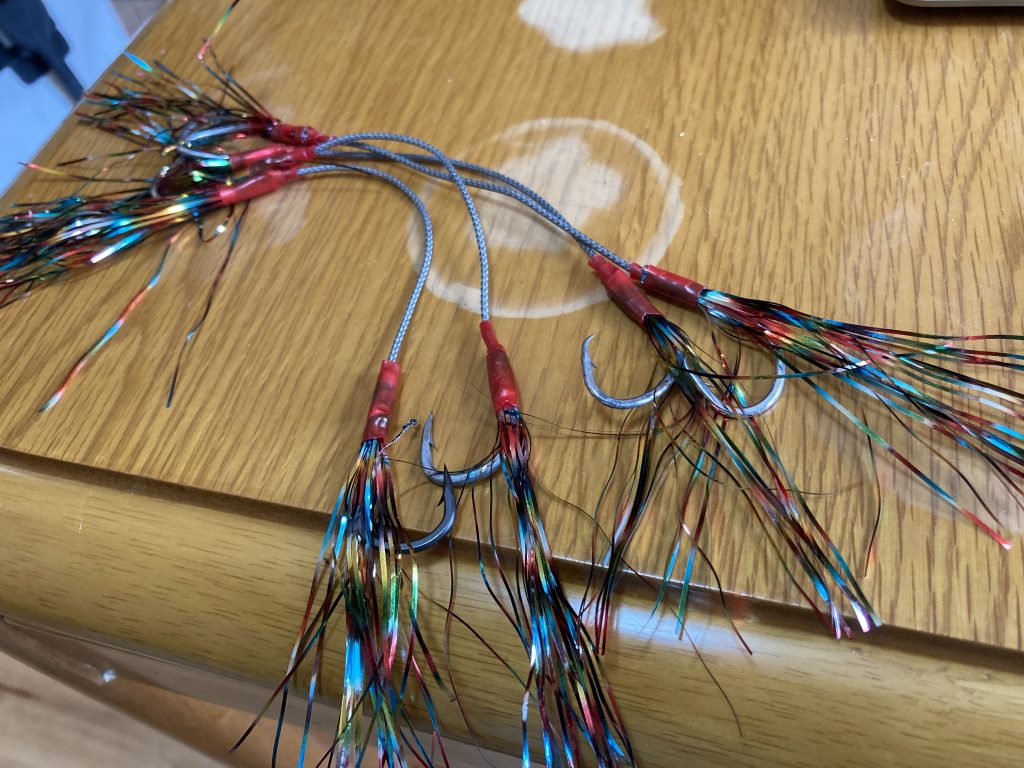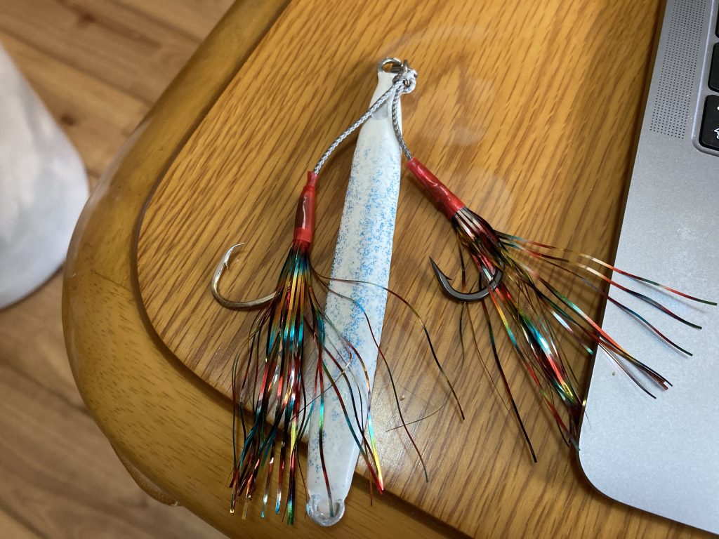 目立ちますよね!真っ白になったジグを使うので、少しでも目立って欲しいと・・・そういった想いで付けました。理由はもう一つあります。