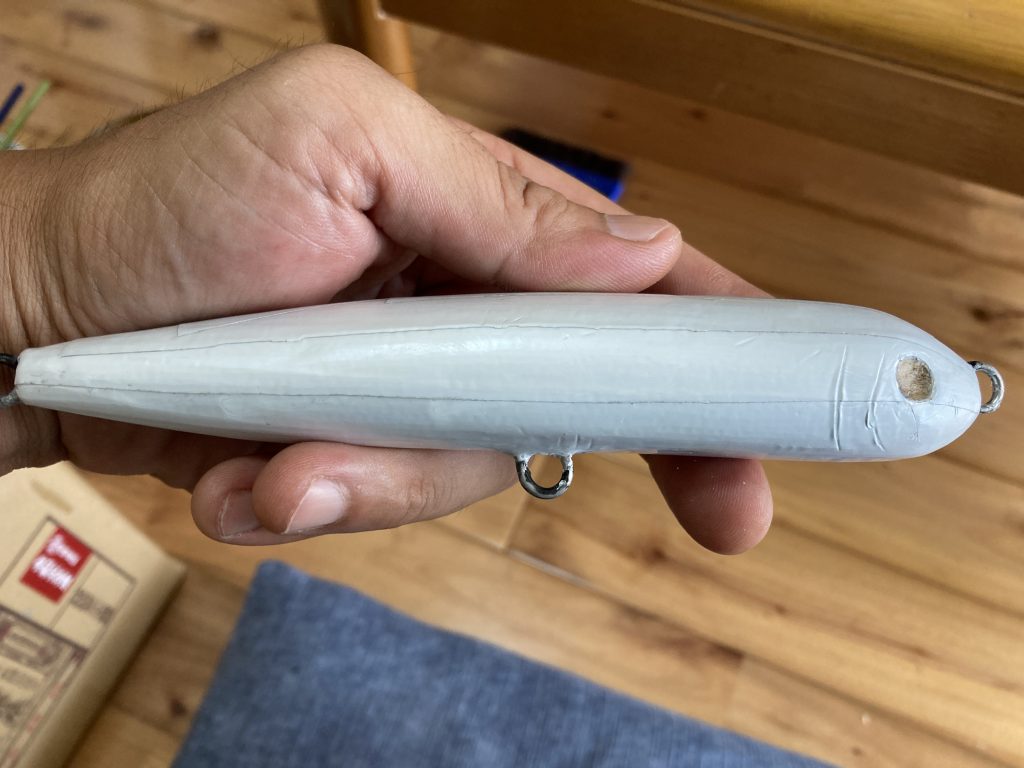 朝から手作りルアーの続きで、クリアーのコーティングをしたんですけど、湿度が高くて真っ白になってしまいました。めっちゃ悔しい・・・ここから立て直すことは可能なのか・・・取り敢えず乾燥してそうな冷蔵庫に入れてみました。笑